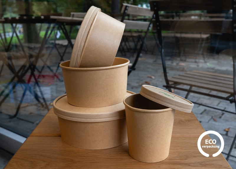 Mit strengen Zertifizierungen gemäß BPI, EU-Norm DIN EN 13432 und USA-Norm ASTM D 6400, ist die Schale für den direkten Kontakt mit Lebensmitteln und Trinkwasser zugelassen. Optional mit einem passenden Deckel erhältlich, verbindet sie praktischen Nutzen mit ökologischer Verantwortung und ist ein zuverlässiger Begleiter für umweltbewusste Gastronomiebetriebe.