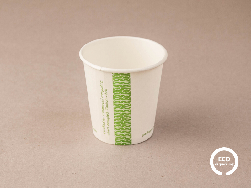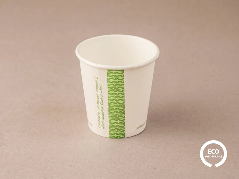 Nachhaltiger Papierbecher 114 ml (4 oz) von Vegware, perfekt für Espresso, Tee oder kleine Heißgetränke.