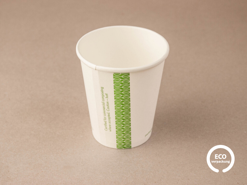 Nachhaltiger Papierbecher 150 - 170 ml (6 oz) von Vegware, perfekt für Espresso, Tee oder kleine Heißgetränke.