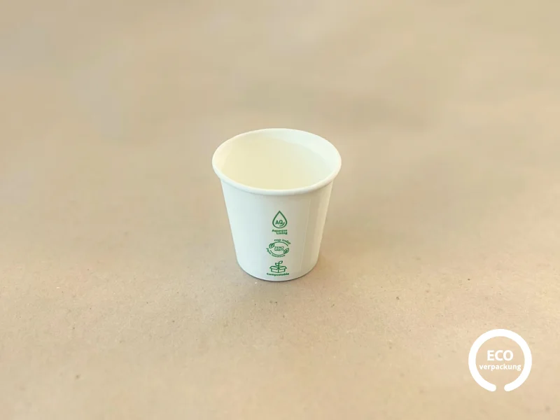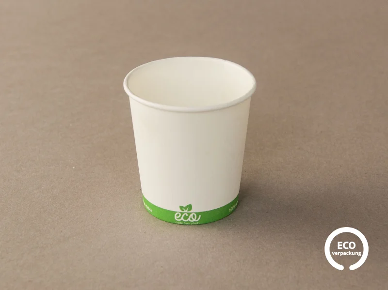 Der Bio Papierbecher für heiße Getränke weiß ECO CUP mit einem Füllvolumen von 100 ml (4 oz) ist ein Paradebeispiel für eine nachhaltige und moderne Verpackungslösung. Hergestellt aus FSC-zertifizierter Zellulose, punktet dieser Becher mit biologischer Abbaubarkeit und seinem zeitlosen weißen Design. Von gehobenen Gastronomiebetrieben bis hin zu Festivals und privaten Feierlichkeiten wie Geburtstagen oder Hochzeiten – dieser vielseitige Becher ist ein Must-have für umweltbewusste Gastgeber und Profis.