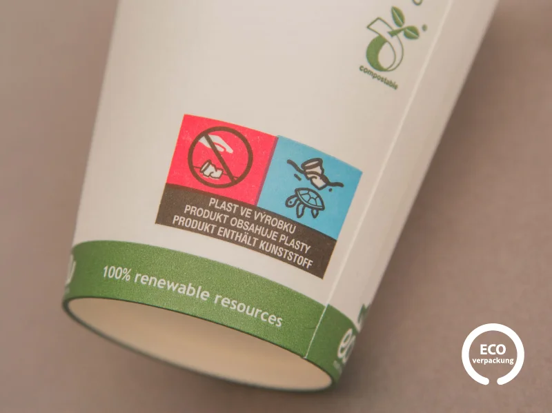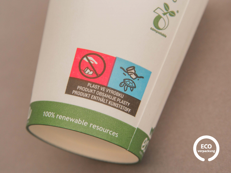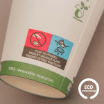 • Zertifizierungen: Entspricht BPI, EU-Norm DIN EN 13432 und USA-Norm ASTM D 6400; zugelassen für den direkten Kontakt mit Lebensmitteln und Getränken