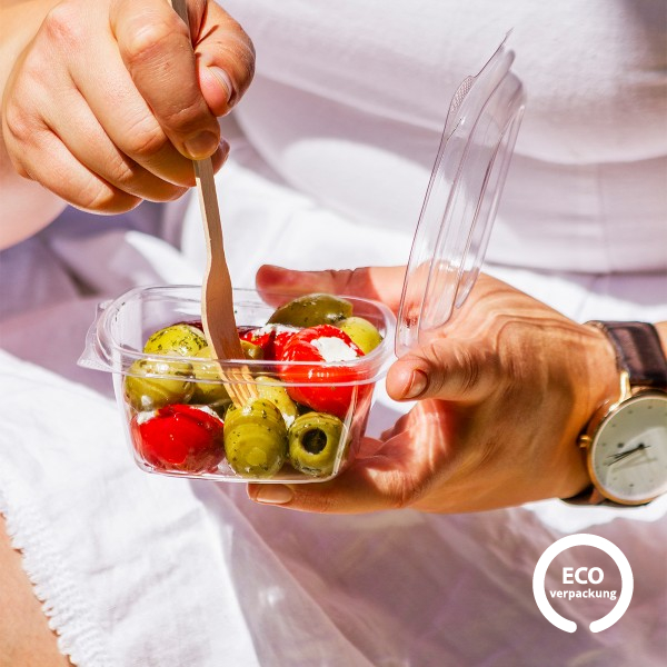 Nachhaltige Salatschale aus Bio-Kunststoff (PLA) – ideal zum Servieren von Salaten, Desserts oder Obst. Hergestellt aus pflanzlicher Stärke (z. B. Mais), 100 % biologisch abbaubar und kompostierbar nach EN 13432. Das klare Design bietet eine attraktive Präsentation und ist perfekt für Gastronomie, Catering und Take-away.