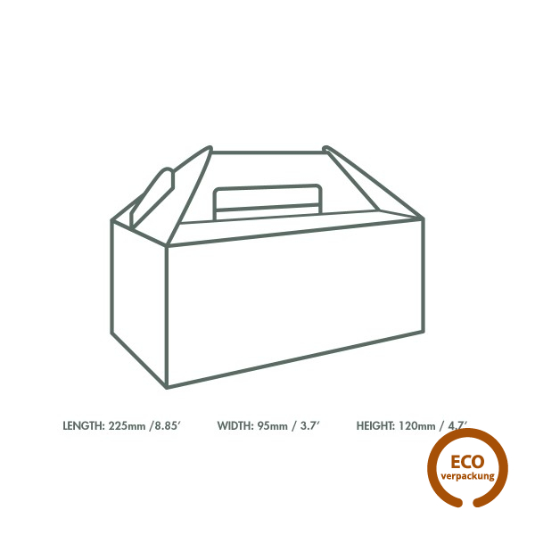 Die umweltfreundliche Papier-Tragebox in brauner Kraftoptik ist die perfekte Lösung für den Transport von Speisen, Snacks oder Desserts.