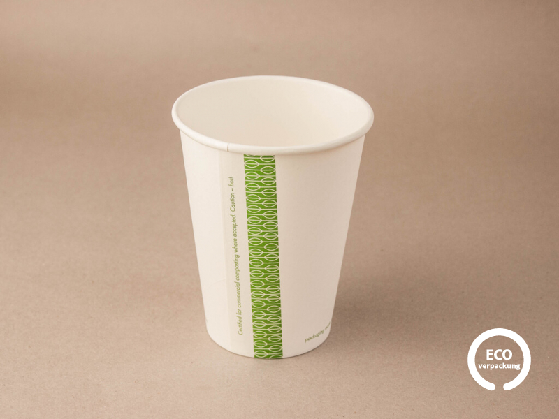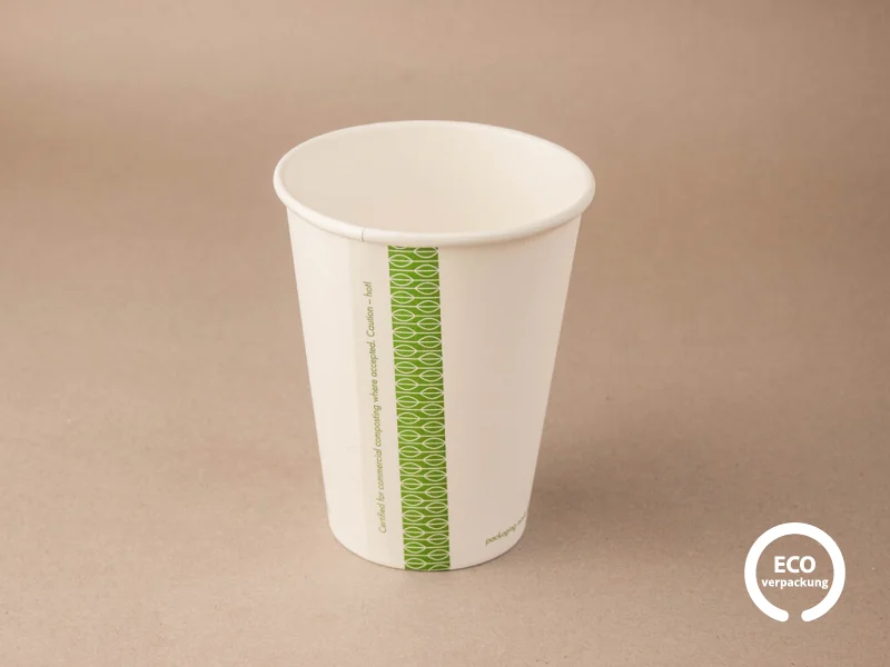 Der weiße Biopapier-Becher für heiße Getränke mit einem Fassungsvermögen von 300–350 ml (12 oz) besteht aus FSC-zertifizierter Zellulose mit Maisstärkebeschichtung und ist vollständig biologisch abbaubar. Er eignet sich ideal für Kaffee, Tee und andere Heißgetränke – sei es im Café, bei Events oder im To-go-Bereich. Der Becher ist fettresistent, durchflussdicht sowie mikrowellen- und gefriergeeignet. Temperaturbeständig von -20 °C bis +85 °C erfüllt er höchste Umweltstandards gemäß BPI, EU-Norm DIN EN 13432 und ASTM D 6400.
