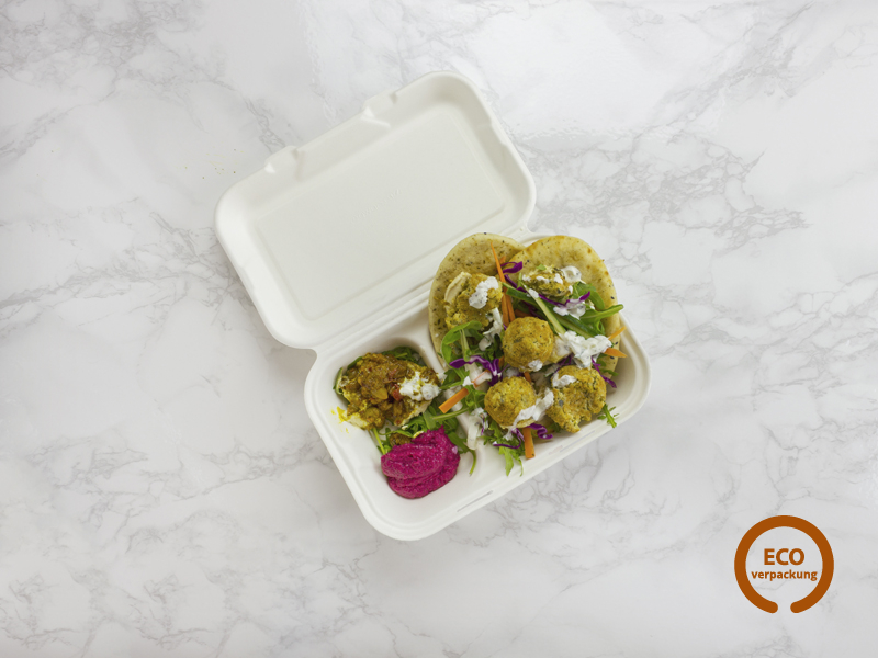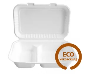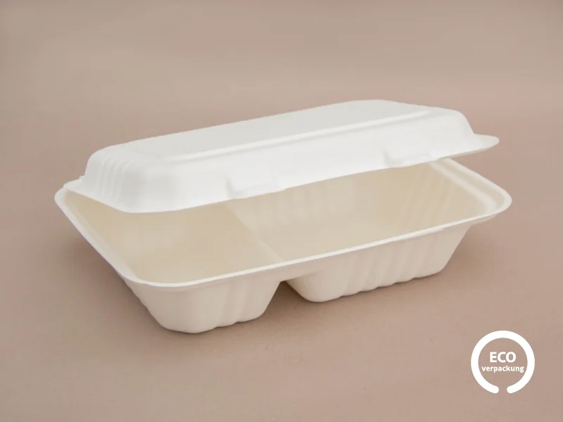 Menu-Boxen aus Zuckerrohr sind eine nachhaltige Alternative zu Plastik oder Styropor.