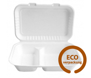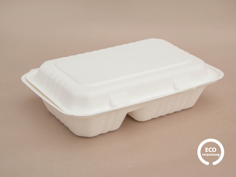 Der umweltfreundliche Menu-Box mit einem Volumen von 1000 ml, aufgeteilt in zwei Fächer, ist ideal für Kombinationen von Speisen (Hauptgang + Beilage).
